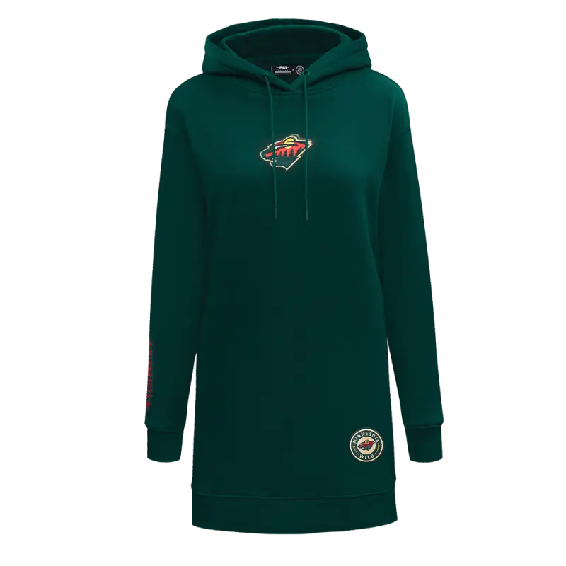 NHL MINNESOTA WILD CLASSIC WOMEN’S FLEECE HOODIE DRESS (FOREST GREEN)