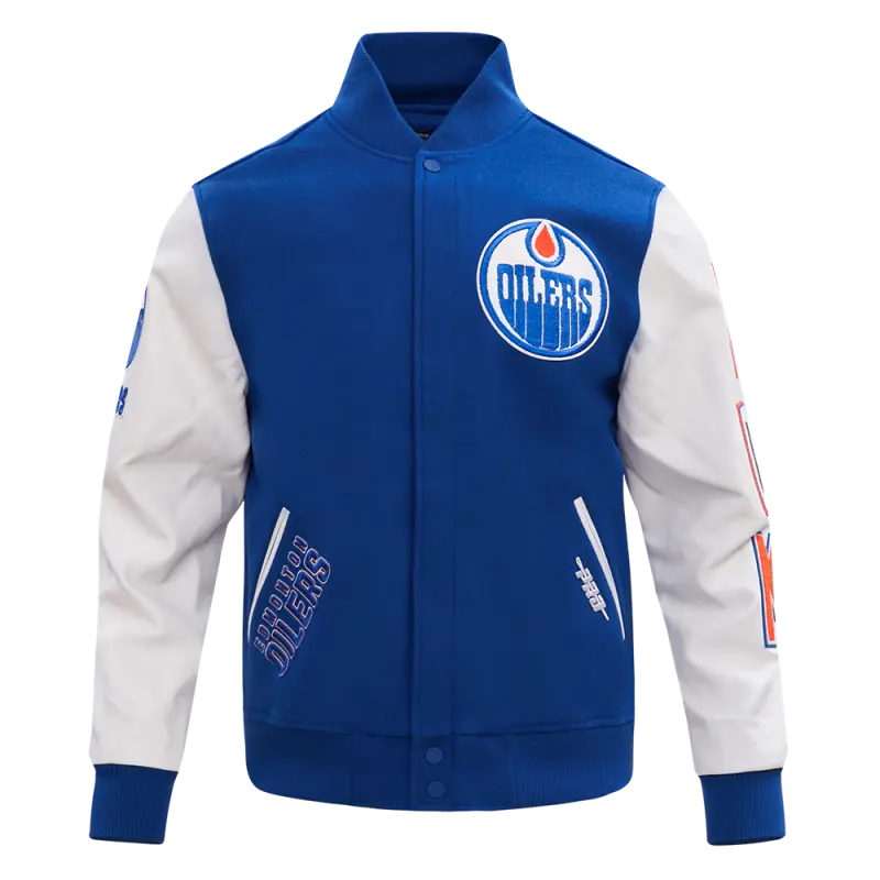NHL EDMONTON OILERS CLASSIC WOOL MEN’S VARSITY JACKET (DODGER BLUE\/WHITE)