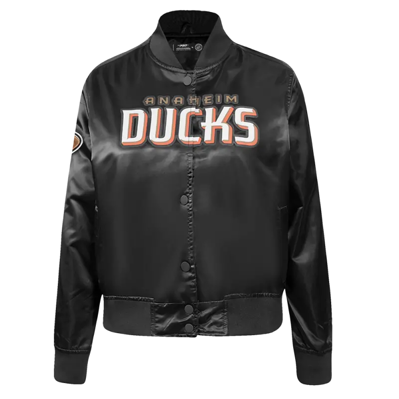 NHL ANAHEIM DUCKS CLASSIC WOMEN’S SATIN JACKET (BLACK)