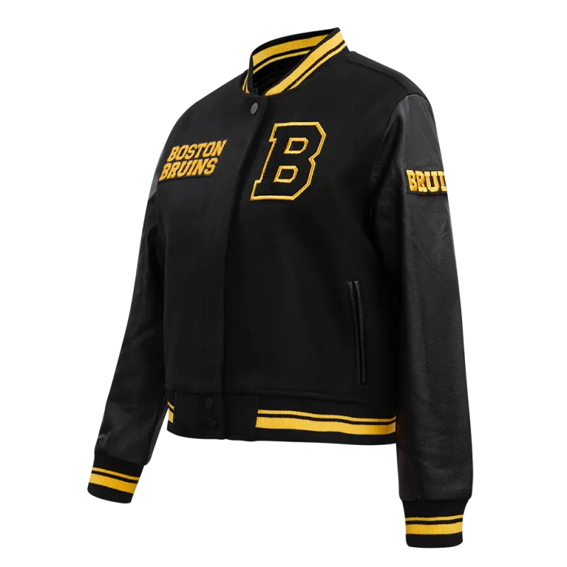 NHL BOSTON BRUINS RETRO CLASSIC WOMEN’S RIB WOOL VARSITY JACKET (BLACK\/YELLOW)