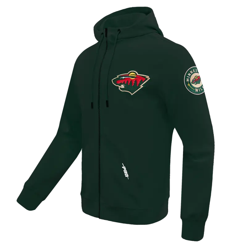NHL MINNESOTA WILD CLASSIC CHENILLE MEN’S FULL ZIP PULLOVER HOODIE (FOREST GREEN)