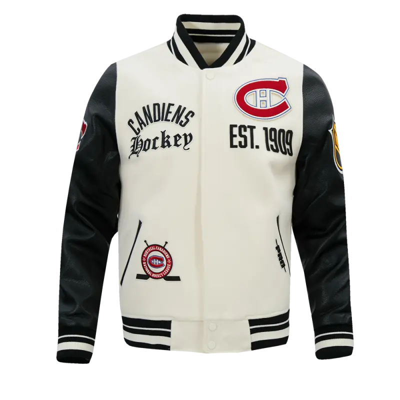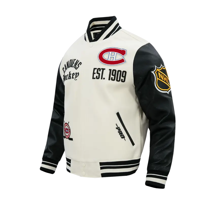 NHL MONTREAL CANADIENS MODERN ORIGINALS MEN’S RIB WOOL VARSITY JACKET (EGGSHELL\/ BLACK)
