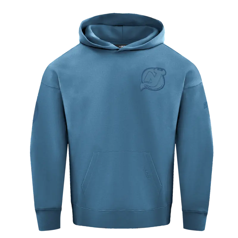 NHL NEW JERSEY DEVILS NEUTRAL MEN’S DROP SHOULDER FLEECE PULLOVER HOODIE (STEEL BLUE)