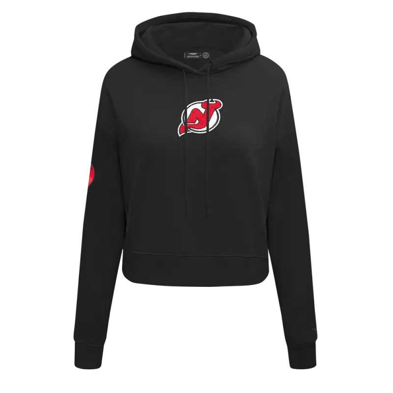 NHL NEW JERSEY DEVILS CLASSIC WOMEN’S FLEECE CROPPED PULLOVER HOODIE (BLACK)