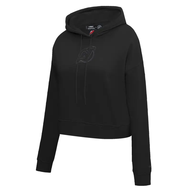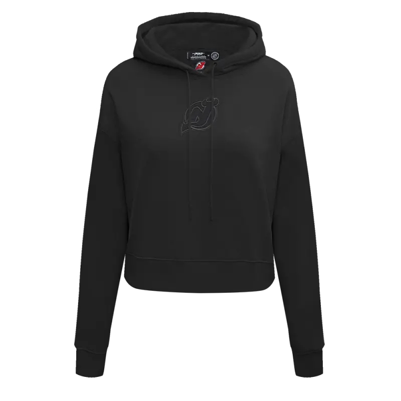 NHL NEW JERSEY DEVILS NEUTRAL WOMEN’S CROPPED PULLOVER HOODIE (BLACK)