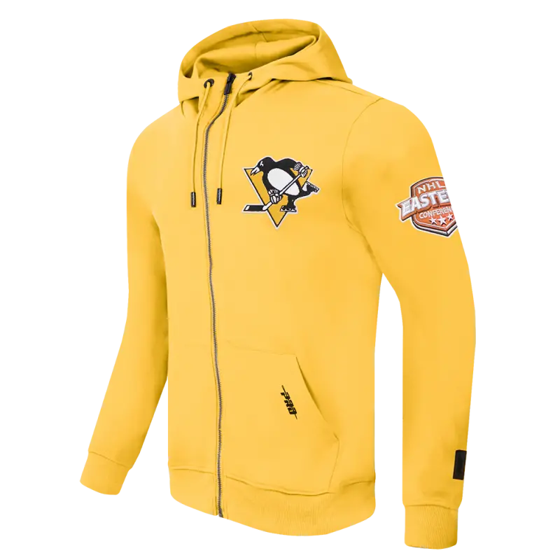 NHL PITTSBURGH PENGUINS CLASSIC CHENILLE DOUBLE KNIT FULL ZIP PULLOVER HOODIE (YELLOW)