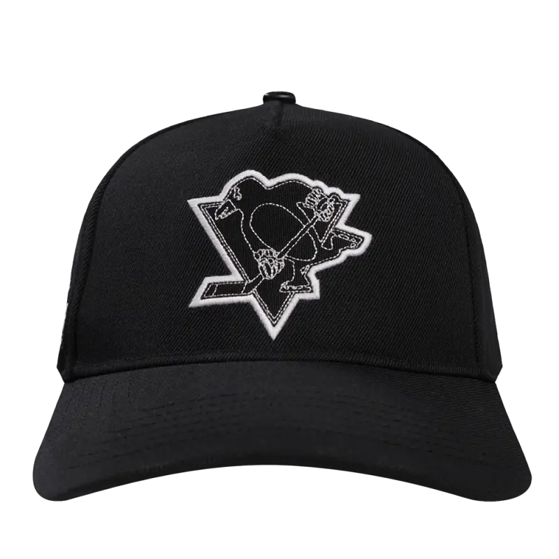 NHL PITTSBURGH PENGUINS OLD ENGLISH UNISEX 6 PANEL SNAPBACK HAT (BLACK)
