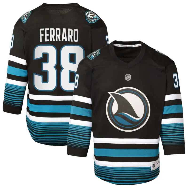 San Jose Sharks Fanatics Replica Alternate Breakaway Jersey – Black – Mario Ferraro – Youth