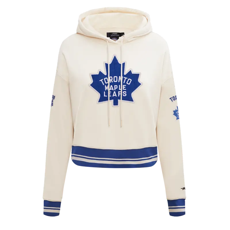 NHL TORONTO MAPLE LEAFS RETRO CLASSIC WOMEN’S RIB CROPPED PULLOVER HOODIE (EGGSHELL\/DODGER BLUE)