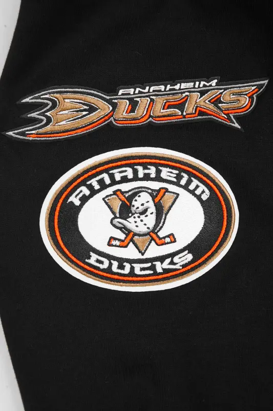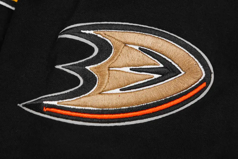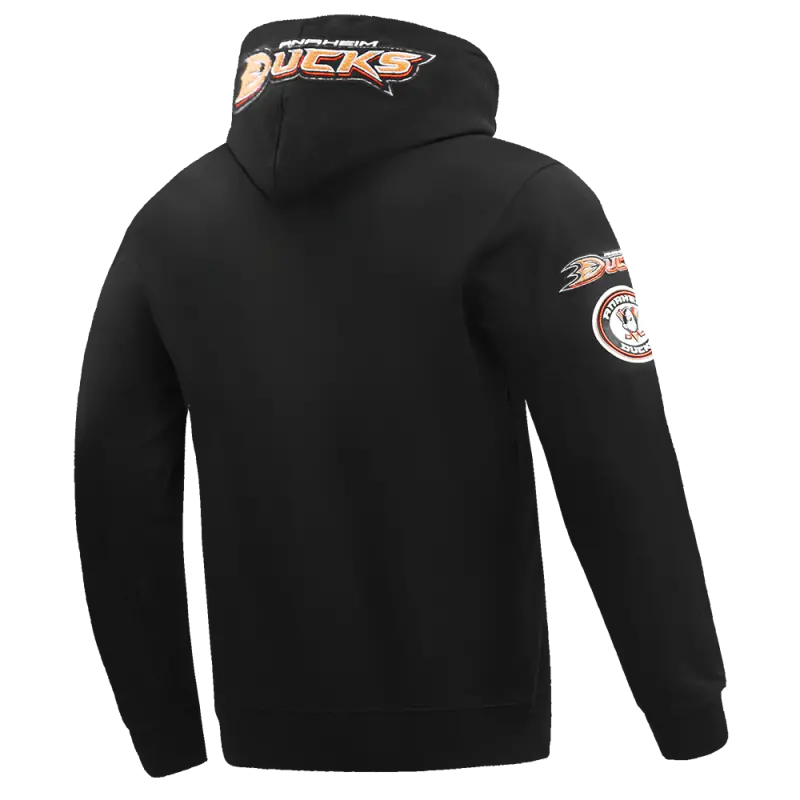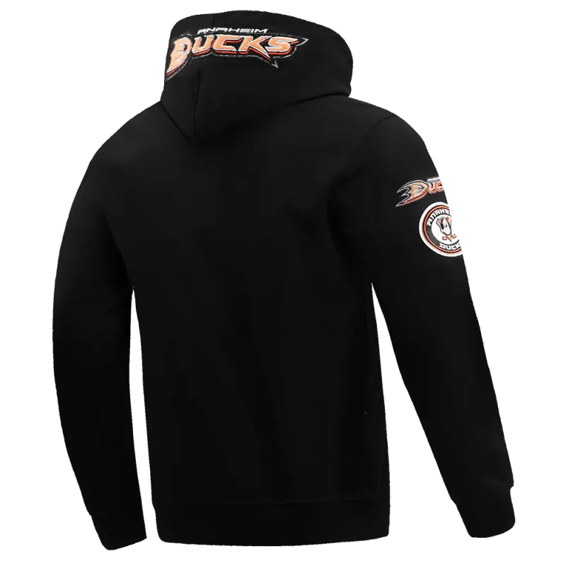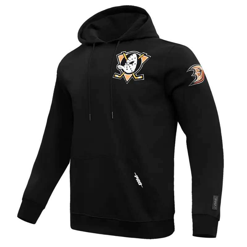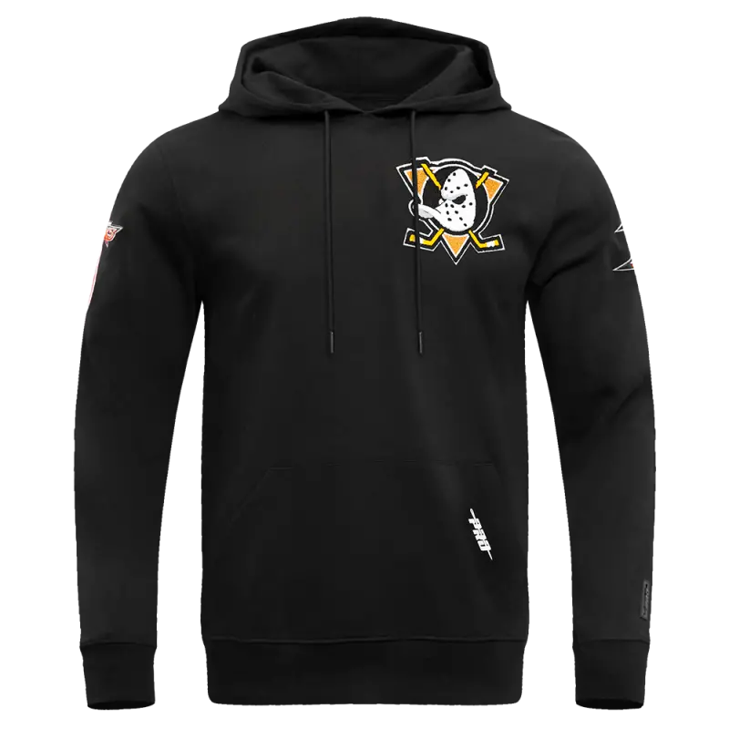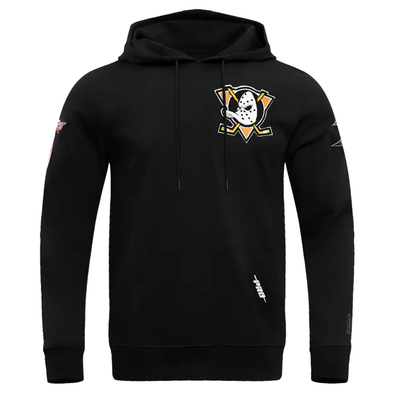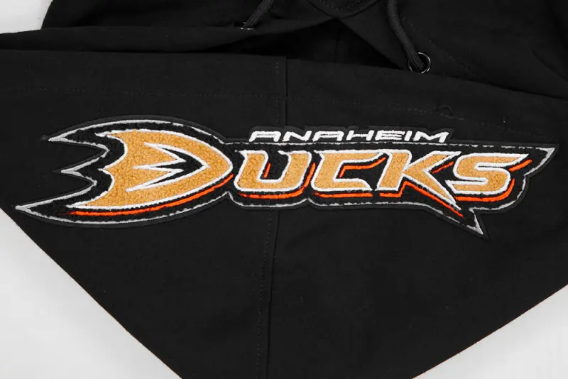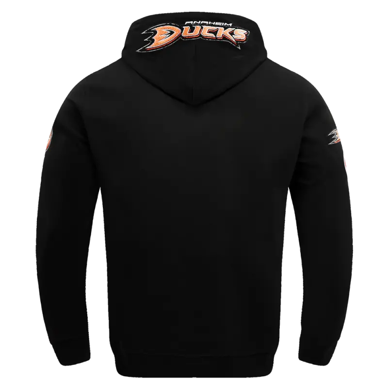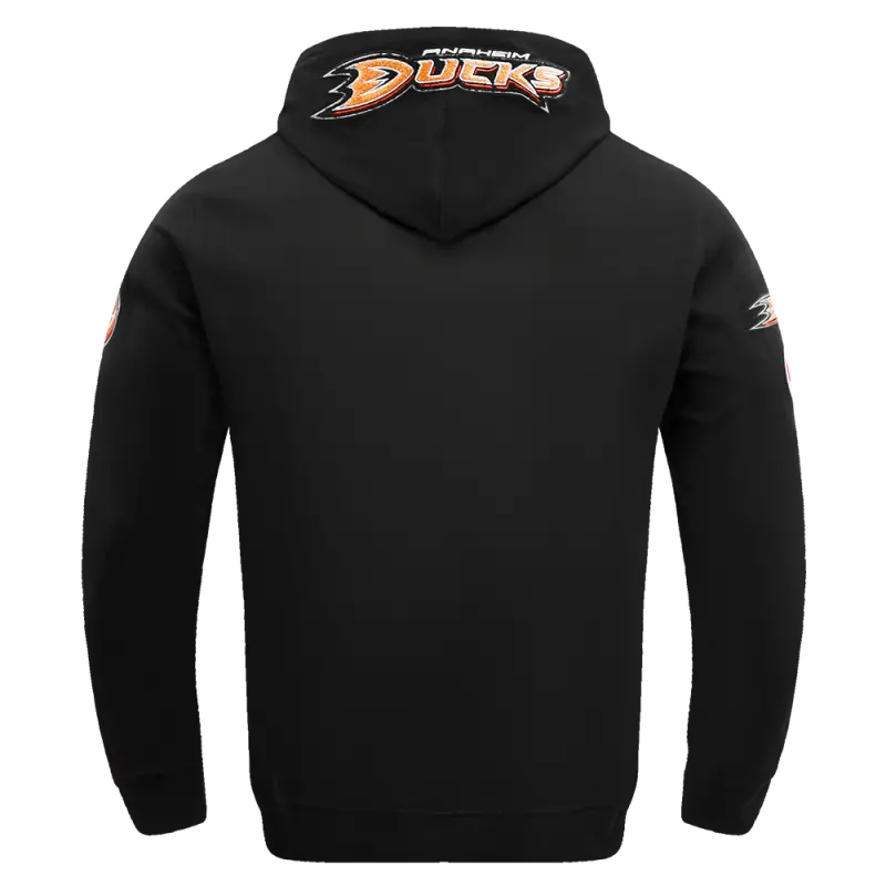 NHL ANAHEIM DUCKS CLASSIC CHENILLE MEN’S DOUBLE KNIT PULLOVER HOODIE (BLACK)