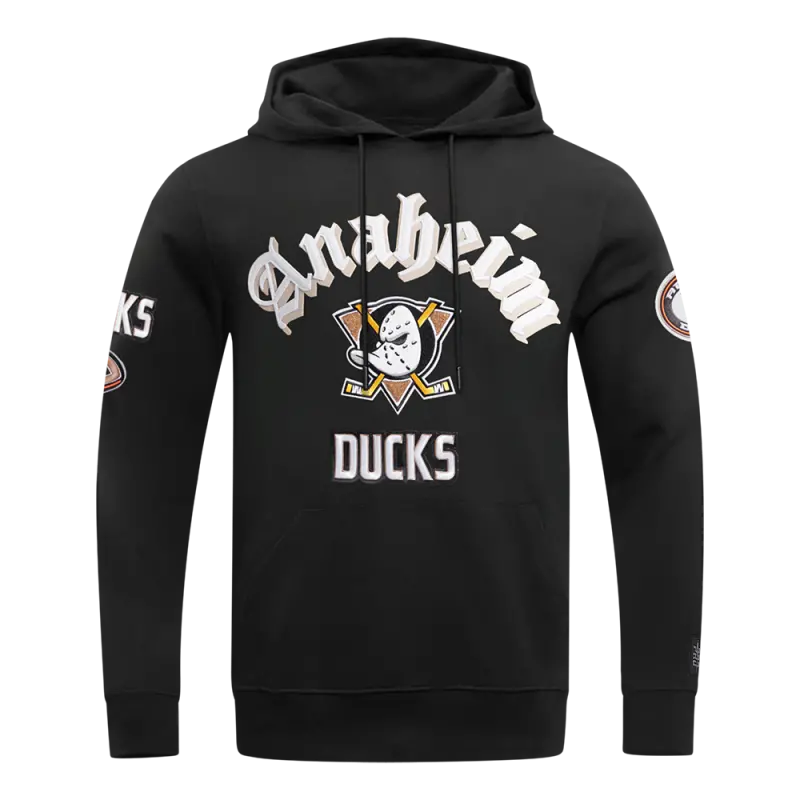 The Pro Standard Premium NHL Anaheim Ducks Old English Men’s PO Hoodie (Black)