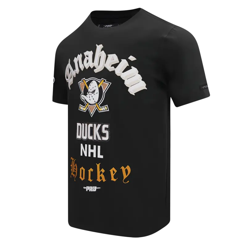The Pro Standard Premium NHL Anaheim Ducks Old English Men’s Tee (Black)