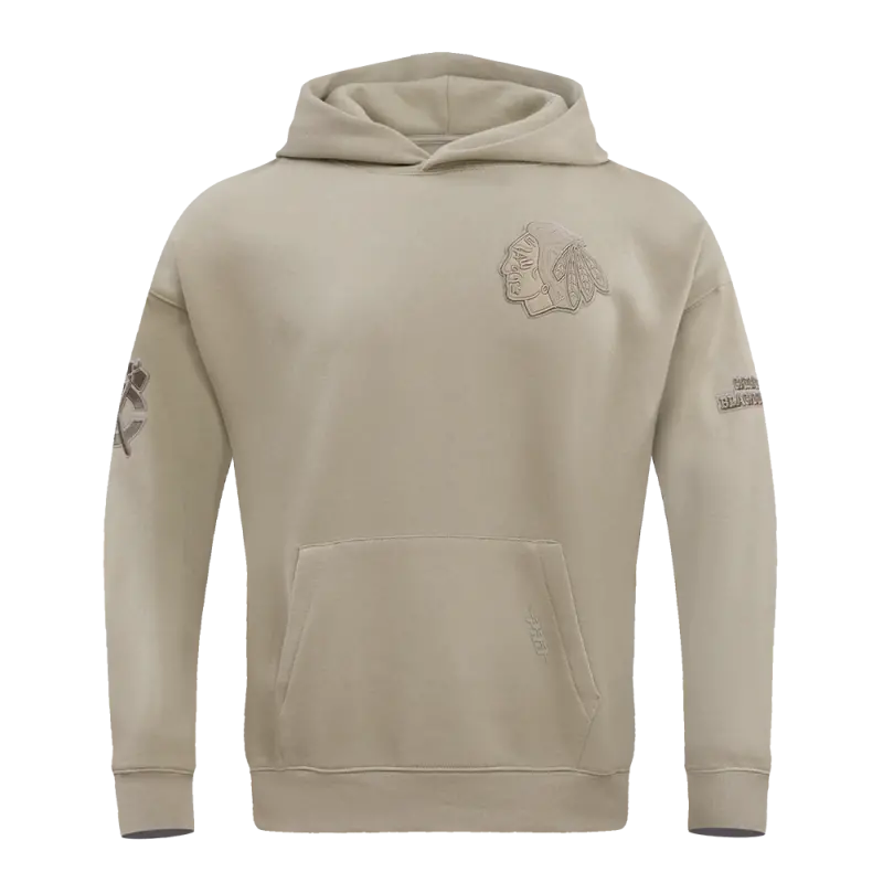 Home / Shop / SWEATSHIRTS / NHL CHICAGO BLACKHAWKS NEUTRAL DROP SHOULDER FLEECE PULLOVER HOODIE (TAUPE)