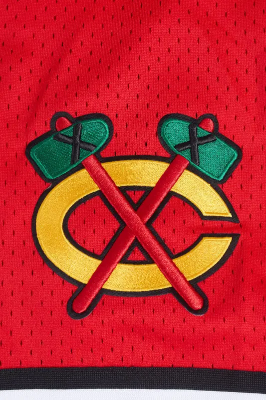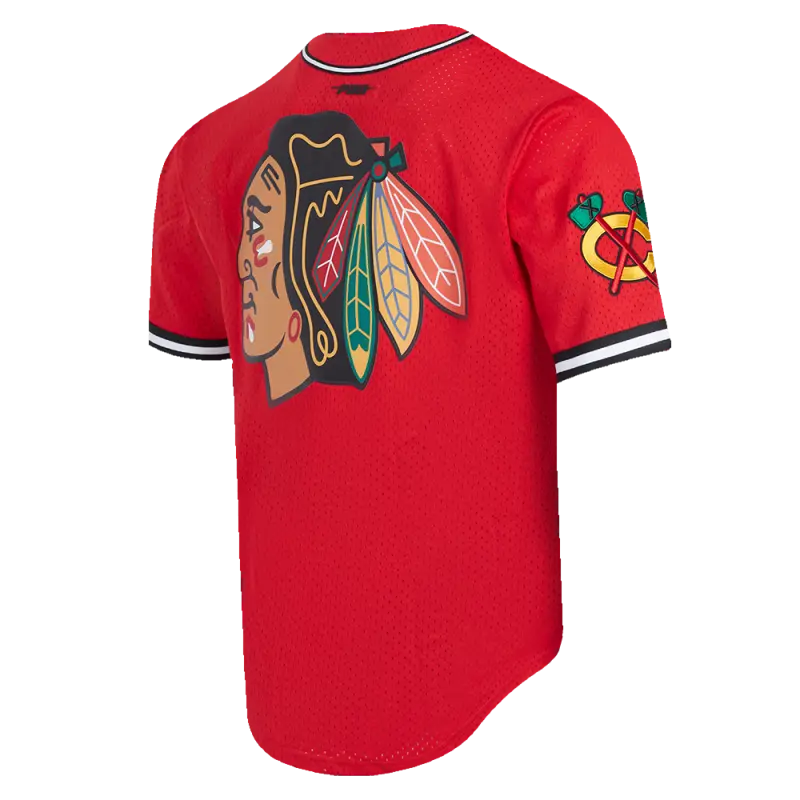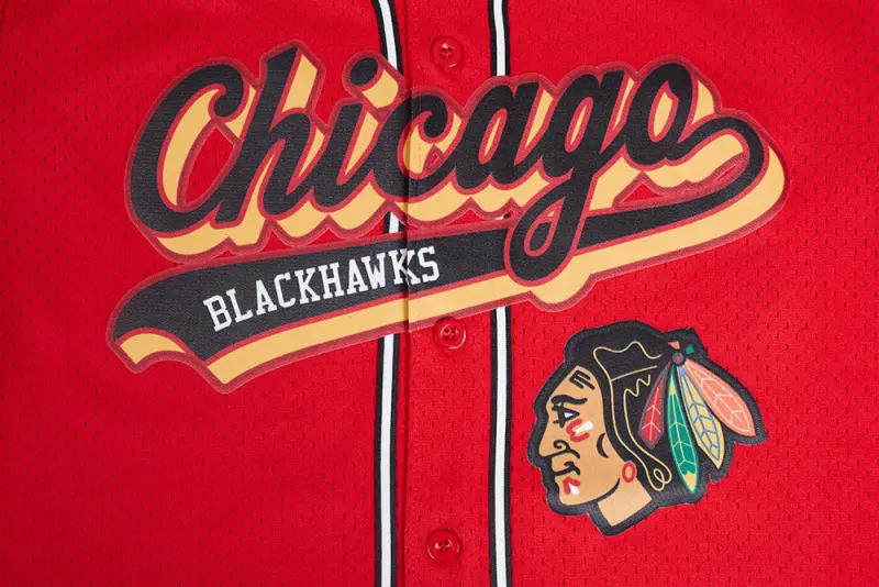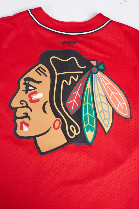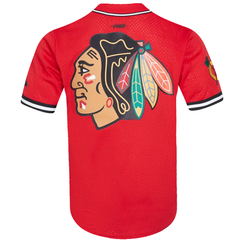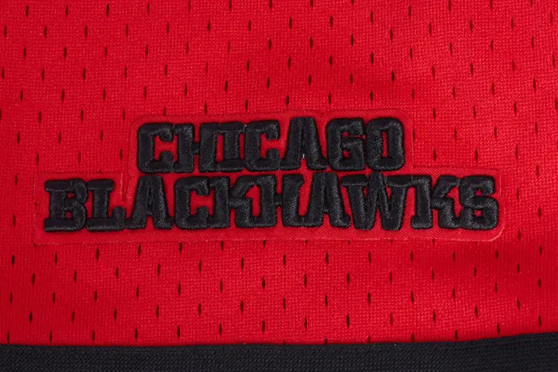 NHL CHICAGO BLACKHAWKS SCRIPT TAIL MEN’S MESH BUTTON DOWN SHIRT (RED\/BLACK)
