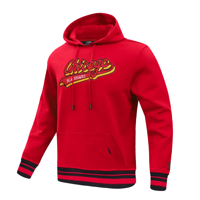 Home / Shop / SWEATSHIRTS / NHL CHICAGO BLACKHAWKS SCRIPT TAIL MEN’S RIB FLEECE PULLOVER HOODIE (RED\/BLACK)