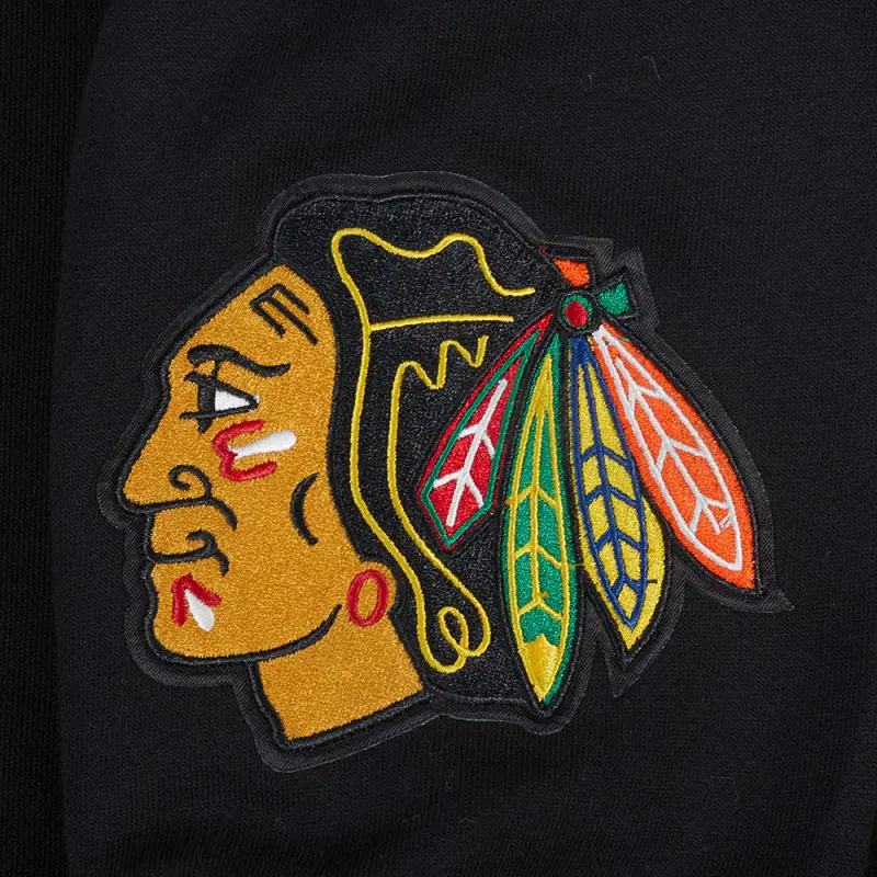 NHL CHICAGO BLACKHAWKS WINGSPAN MEN’S DROP SHOULDER FLEECE CREWNECK (BLACK)