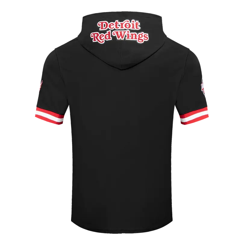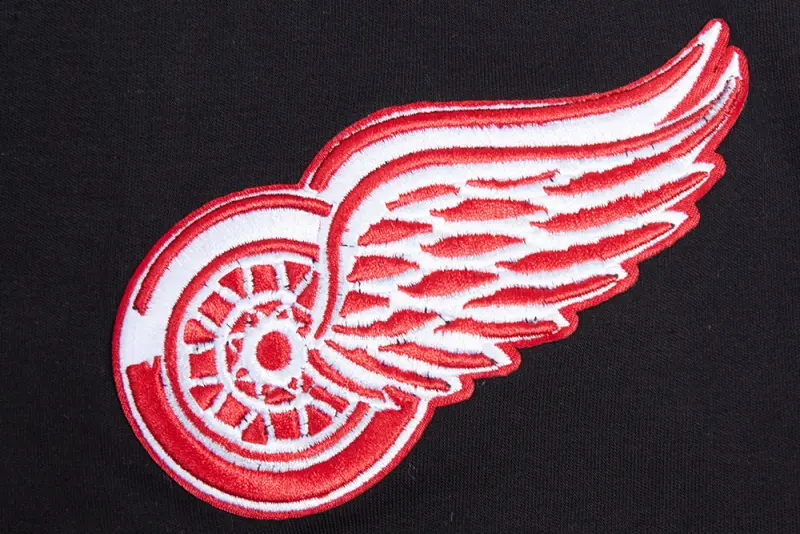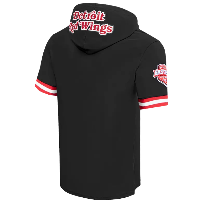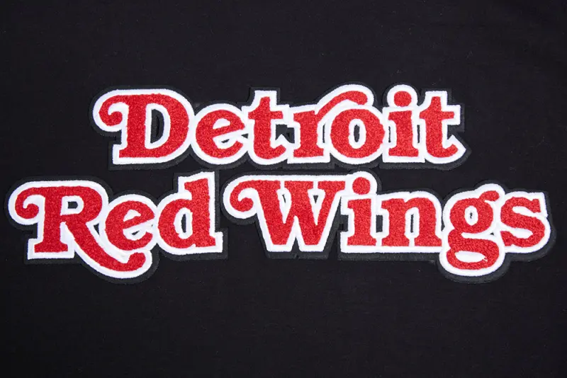 NHL DETROIT RED WINGS CLASSIC CHENILLE MEN’S DOUBLE KNIT SHORT SLEEVE PULLOVER HOODIE (BLACK\/RED)