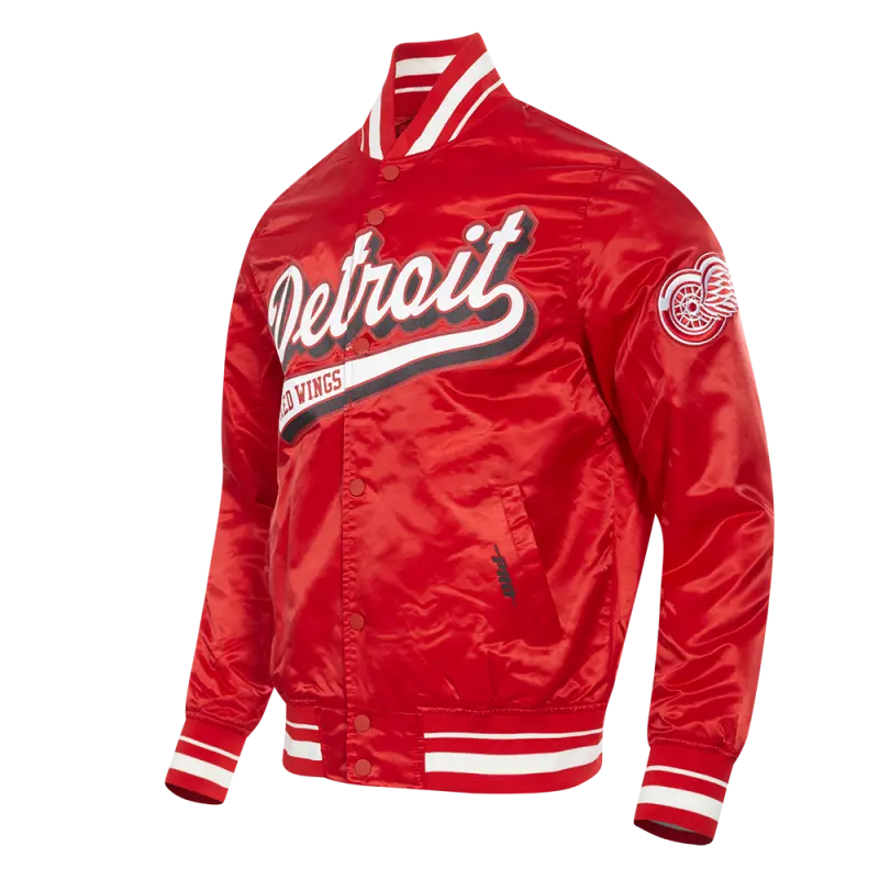 NHL DETROIT RED WINGS SCRIPT TAIL MEN’S SATIN JACKET (RED)
