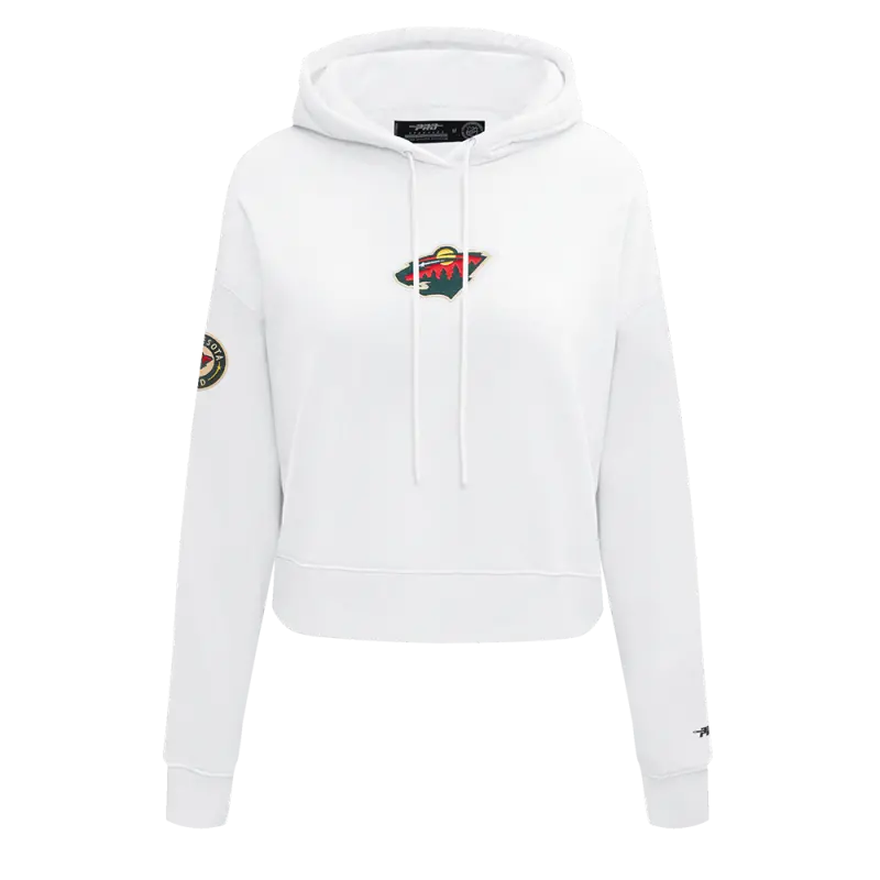 Home / Shop / SWEATSHIRTS / NHL MINNESOTA WILD CLASSIC WOMEN’S CROPPED FLEECE PULLOVER HOODIE (WHITE)