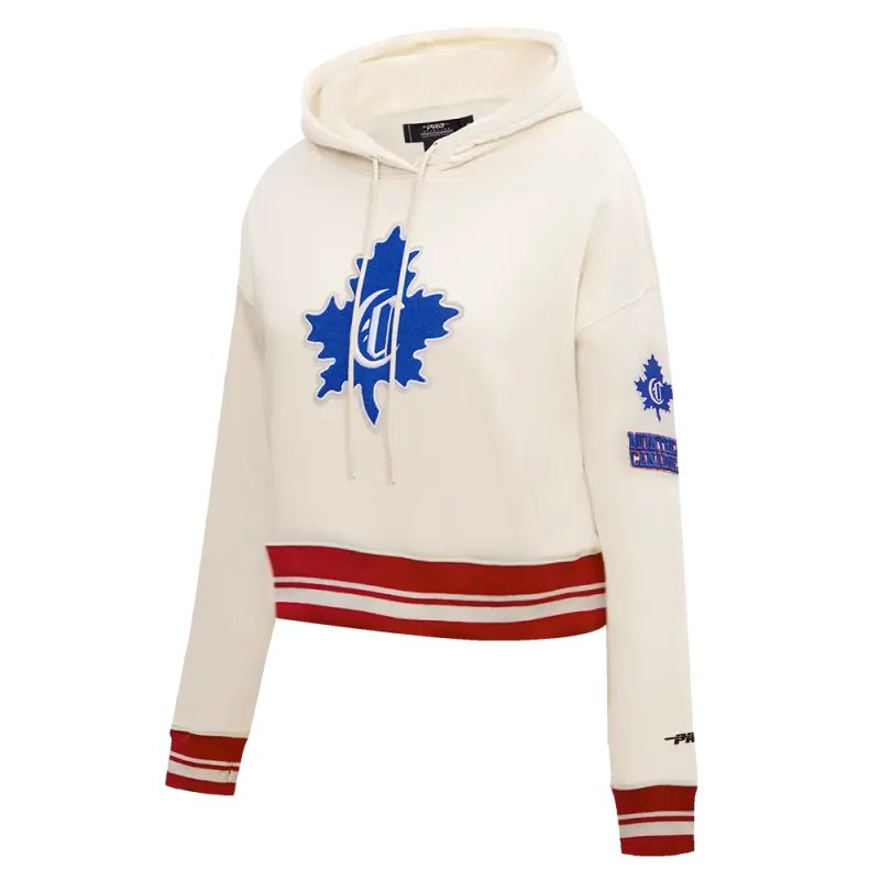 NHL MONTREAL CANADIENS RETRO CLASSIC WOMEN’S RIB CROPPED PULLOVER HOODIE (EGGSHELL\/ RED)