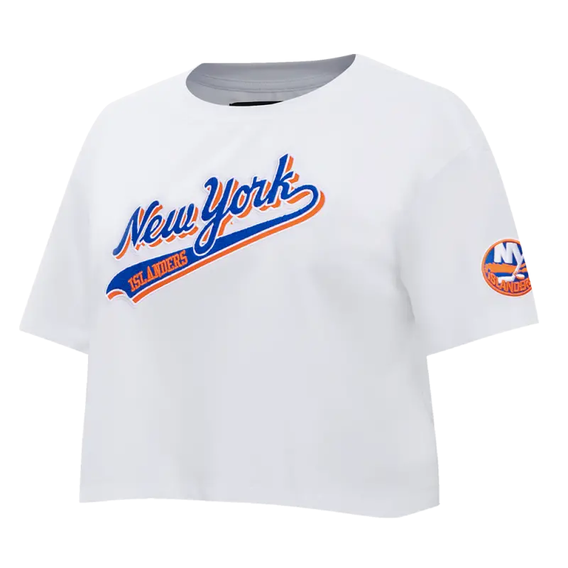 NHL NEW YORK ISLANDERS SCRIPT TAIL WOMEN’S SJ BOXY TEE (WHITE)