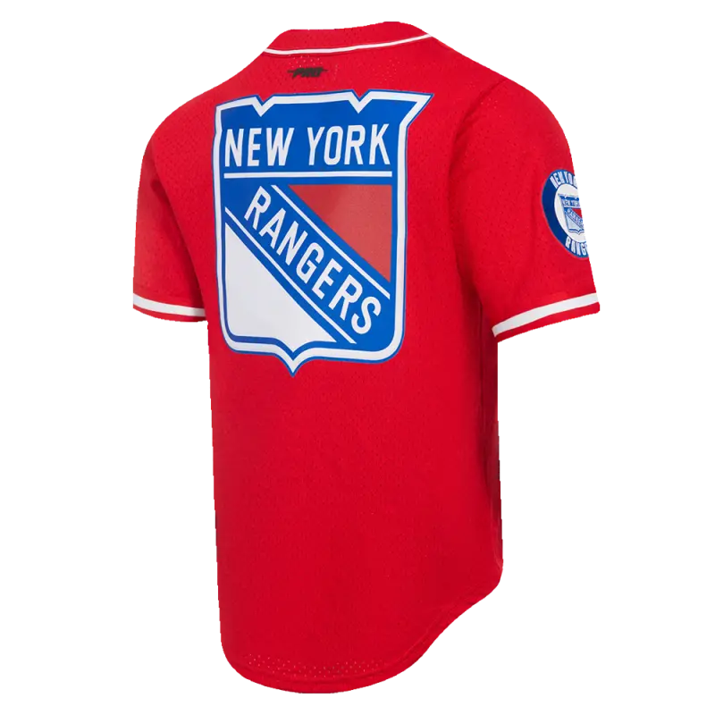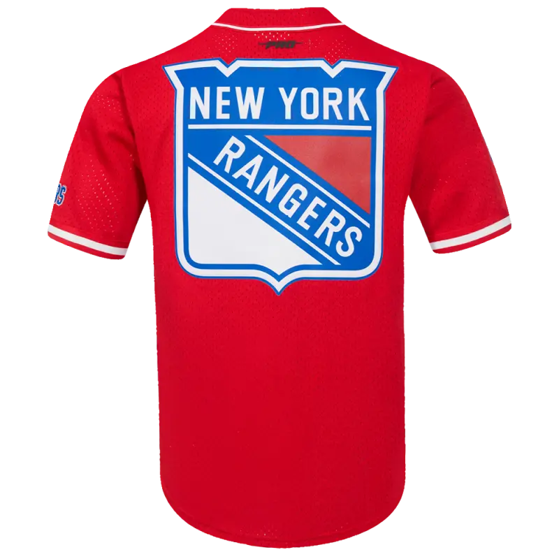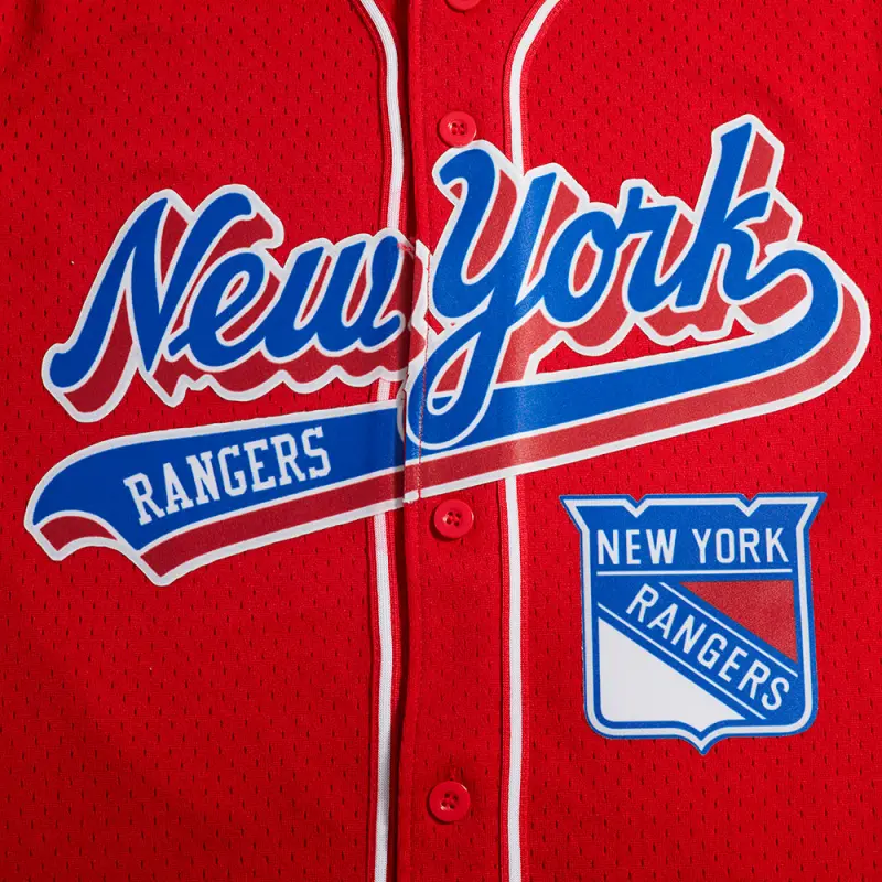 NHL NEW YORK RANGERS SCRIPT TAIL MEN’S MESH BUTTON DOWN SHIRT (RED)