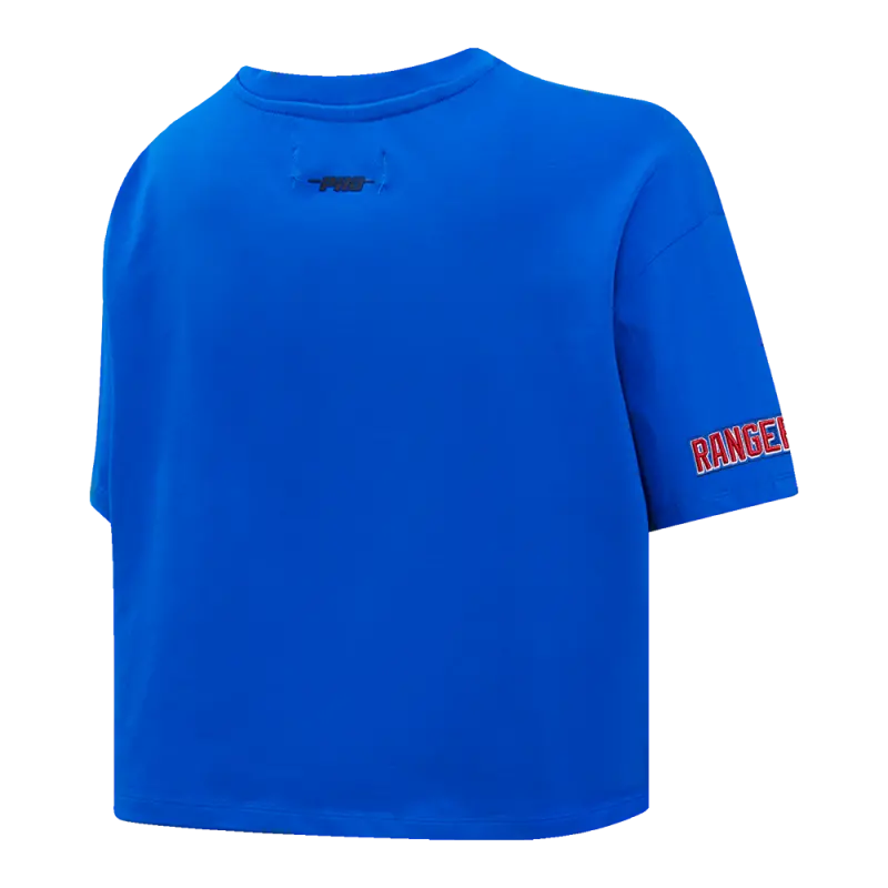 NHL NEW YORK RANGERS SCRIPT TAIL WOMEN’S SINGLE JERSEY BOXY TEE (ROYAL BLUE)