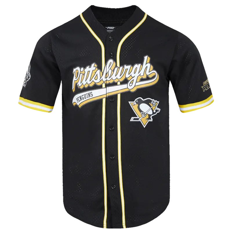 Home / Shop / SHIRTS / NHL PITTSBURGH PENGUINS SCRIPT TAIL MEN’S MESH BUTTON DOWN SHIRT (BLACK\/YELLOW)