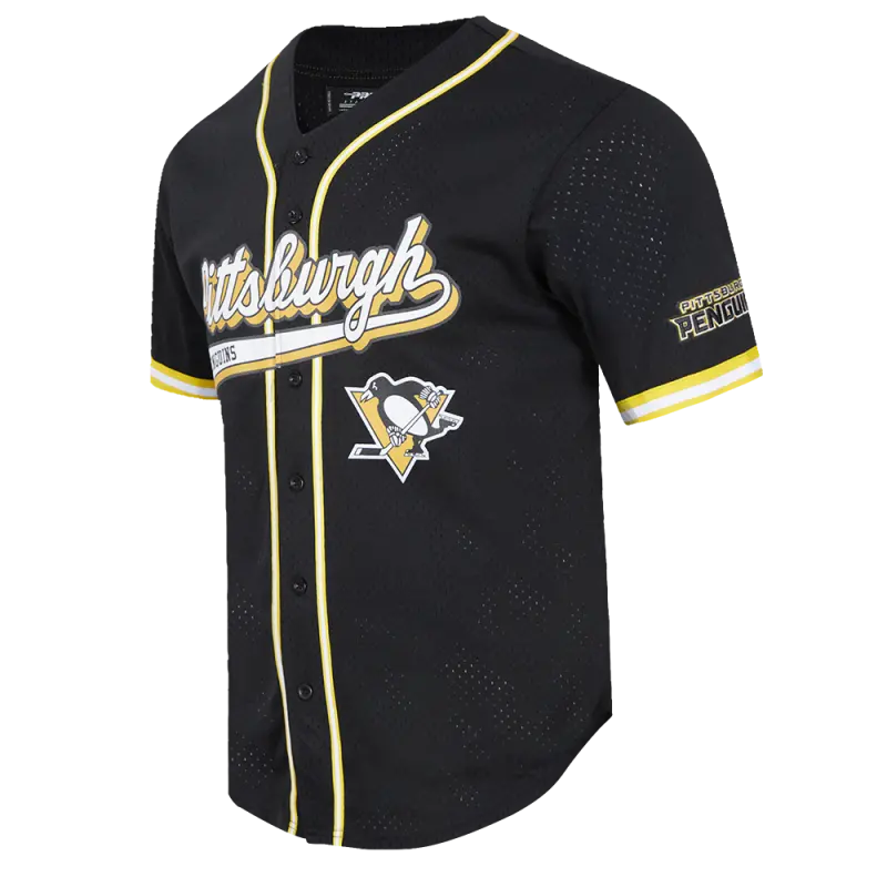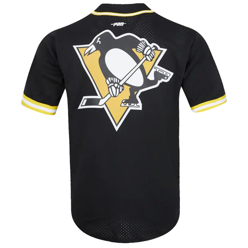 NHL PITTSBURGH PENGUINS SCRIPT TAIL MEN’S MESH BUTTON DOWN SHIRT (BLACK\/YELLOW)