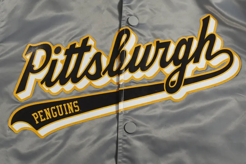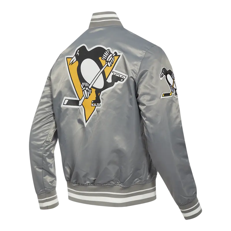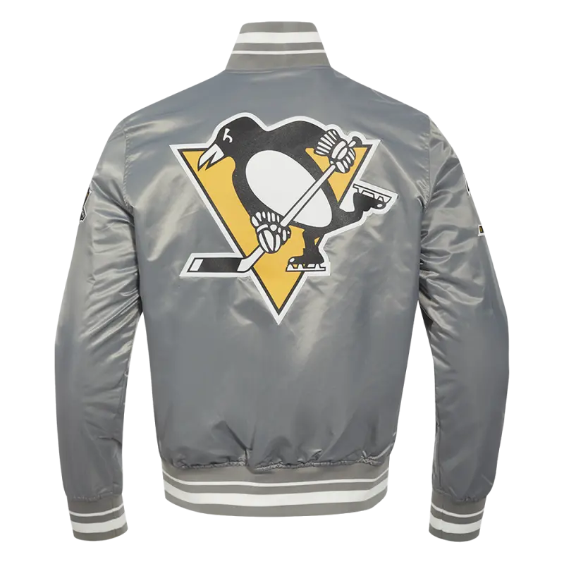 NHL PITTSBURGH PENGUINS SCRIPT TAIL MEN’S SATIN JACKET (GRAY)