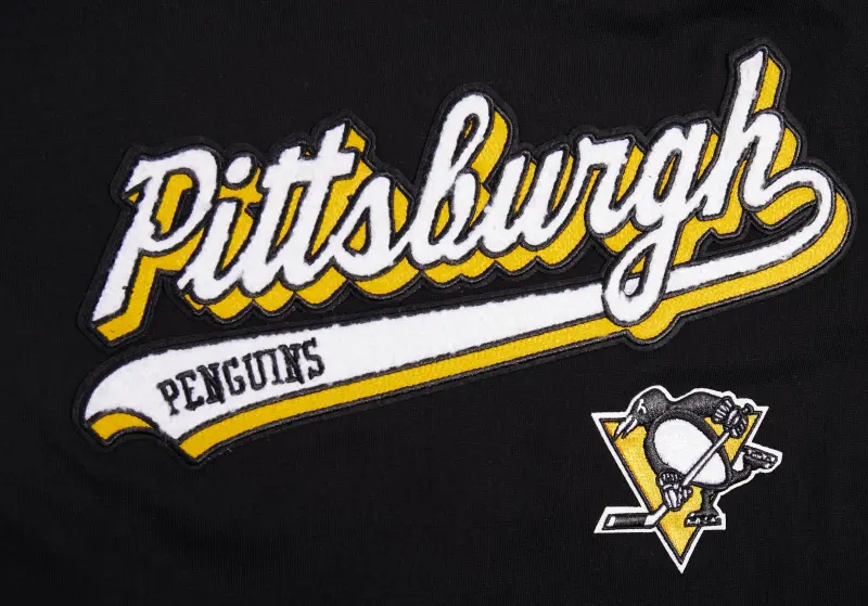 NHL PITTSBURGH PENGUINS SCRIPT TAIL WOMEN’S BOYFRIEND TEE (BLACK)