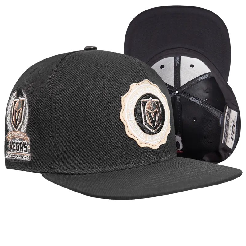 NHL VEGAS GOLDEN KNIGHTS CREST EMBLEM WOOL SNAPBACK HAT (BLACK)
