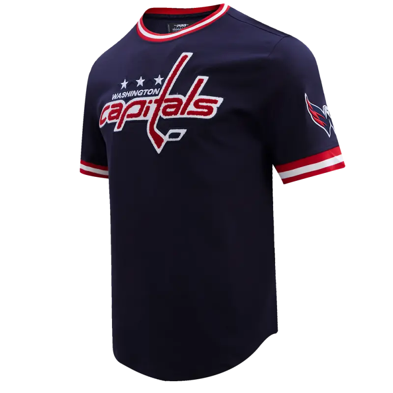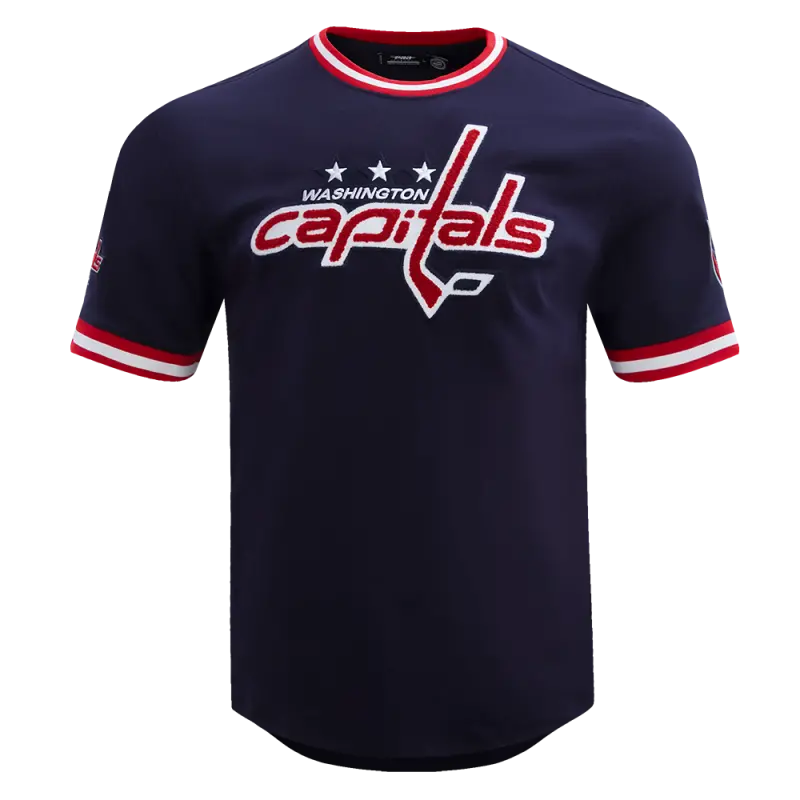 The Pro Standard Premium NHL Washington Capitals Classic Chenille Men’s Jersey (Midnight Navy/Red)